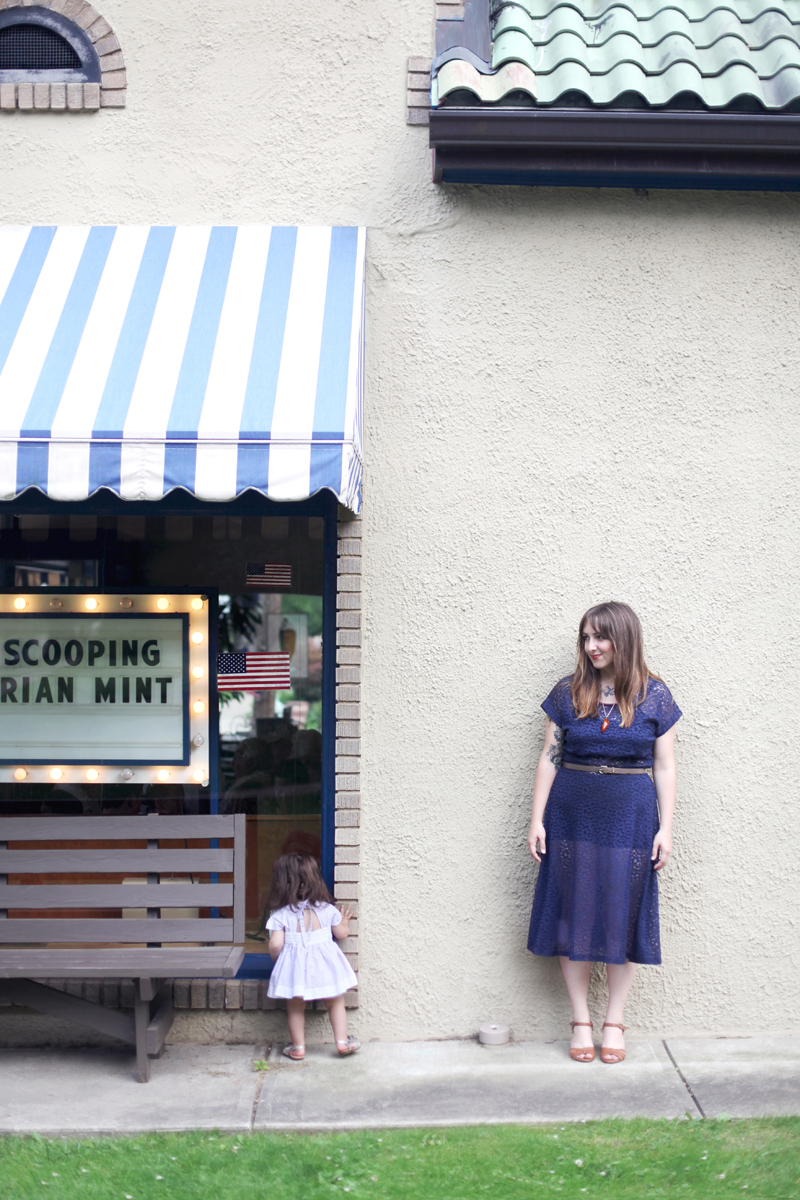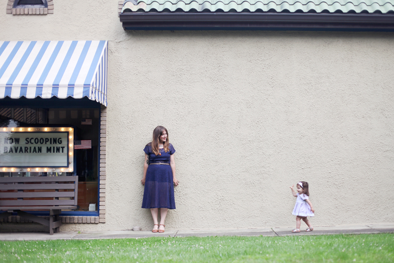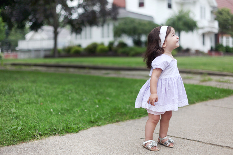 I pride myself on being pretty thrifty, but my desire to save money usually clashes with my annoyingly specific style requirements. I rarely bother looking for clothes at garage sales, because most of the time the things for sale are nothing at all like the classic, vintage-inspired clothes I like for Lucy’s wardrobe. Typically I find most of her vintage clothes at local thrift stores, but it can be frustrating to spend a long time looking through clothes that are tightly smashed onto racks alongside tacky t-shirts and over-appliquéd dresses. It’s rare that I leave the thrift store with more than one simple white t-shirt for Lucy. I also like to look around at local resale shops, but there’s still a lot to sift through while corralling an active toddler who would rather be playing outside.